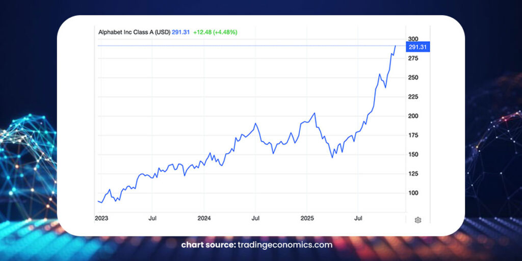 Driven by strong AI momentum, a surge in cloud deal flow, and record revenue, Alphabet shares have increased by 45% year-to-date.