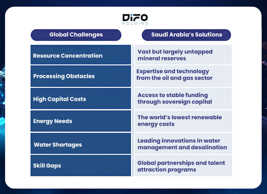 By securing local sources of critical minerals, the Kingdom can enhance its digital capabilities and reduce costs, establishing itself as a central digital hub for the Middle East.